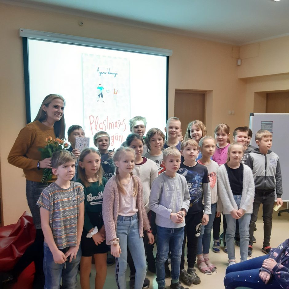 Sadarbojoties ar 4.b un 3.b klases audzinātājām, šīm klasēm lasītavā piedāvājām tikšanos ar grāmatas “Plastmasas huligāni” autori Agnesi Vanagu. Autore kā grāmatā, tā tikšanās laikā pārsteidzoši aizraujošā veidā lika paraudzīties uz vides piesārņojuma problēmu. 23. janvārī vēl nebija zināms, ka žūrijas lasītāji grāmatu “Plastmasas huligāni” ierindos 2. vietā.