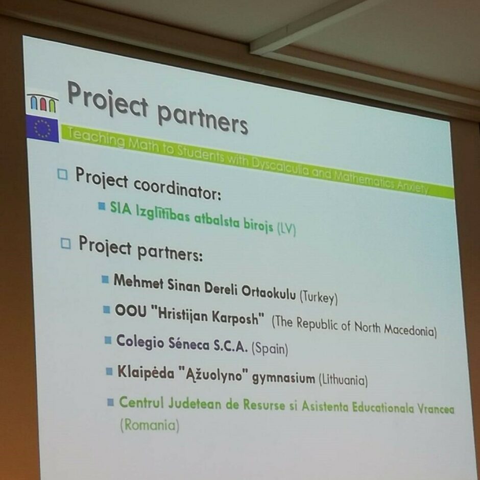 Tajā piedalījās pedagogi no Latvijas, galvenokārt, no Jelgavas pilsētas un novada, gan arī viesi – projekta dalībnieki no Turcijas, Maķedonijas Spānijas, Lietuvas un Rumānijas. Ja projekta pirmajā daļā vairāk tika runāts par diskalkulācijas problēmām pieminētajās valstīs un tās samazināšanu, tad otrajā daļā -Latvijas kolēģes dalījās pieredzē par satraukuma un baiļu sajūtu mazināšanu, apgūstot matemātiku.