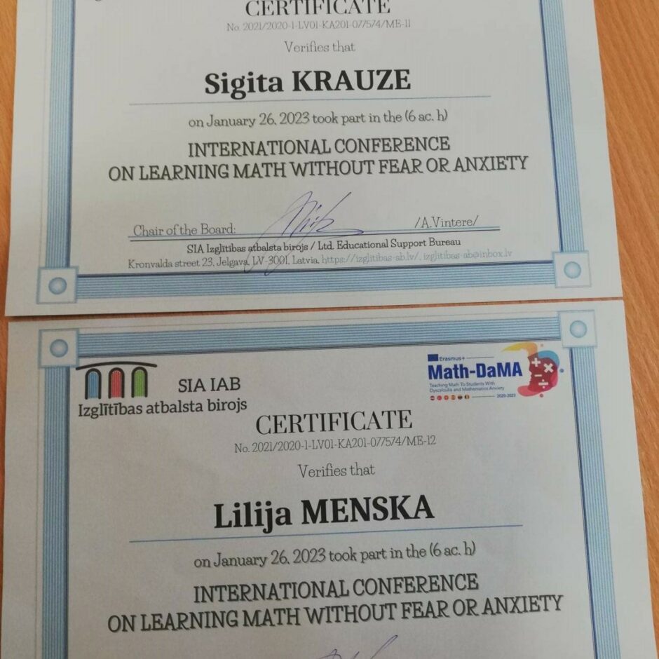 Konferencē piedalījās arī divas Ozolnieku vidusskolas matemātikas skolotājas: Sigita Krauze un Lilija Menska. Tika gūts apstiprinājums, ka citās valstīs diskalkulācijas problēmas ir un rada lielas bažas skolotājiem un bērniem, gan, klausoties kolēģos, secinājām, ka “esam uz viena viļņa” ar viņiem un arī strādājam tā, lai skolēnos nebūtu bailes no matemātikas.