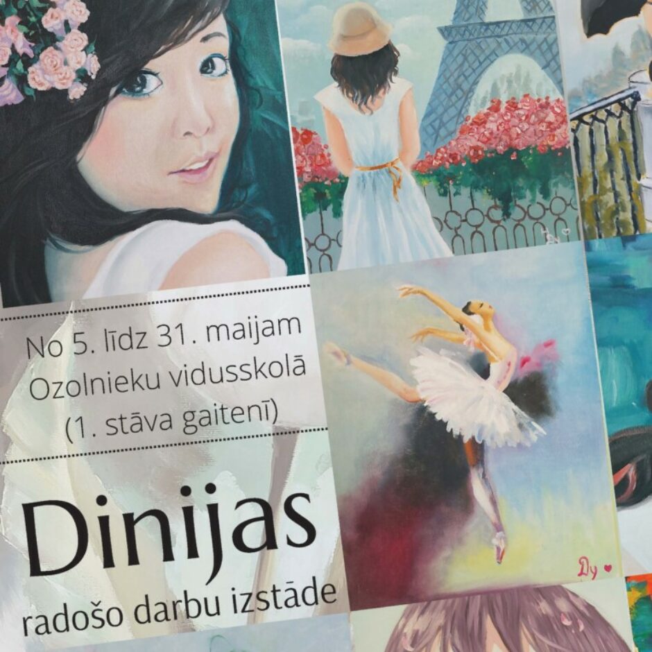 Darbu autore ir 6.b klases skolniece Dinija, talantīga un radoša meitene un darbi ir vesels stāsts par viņas interesēm, ģimeni, izjūtām, tradīcijām un vienkārši skaistiem ikdienas mirkļiem! Darbi pamatā izstrādāti eļļas tehnikā.