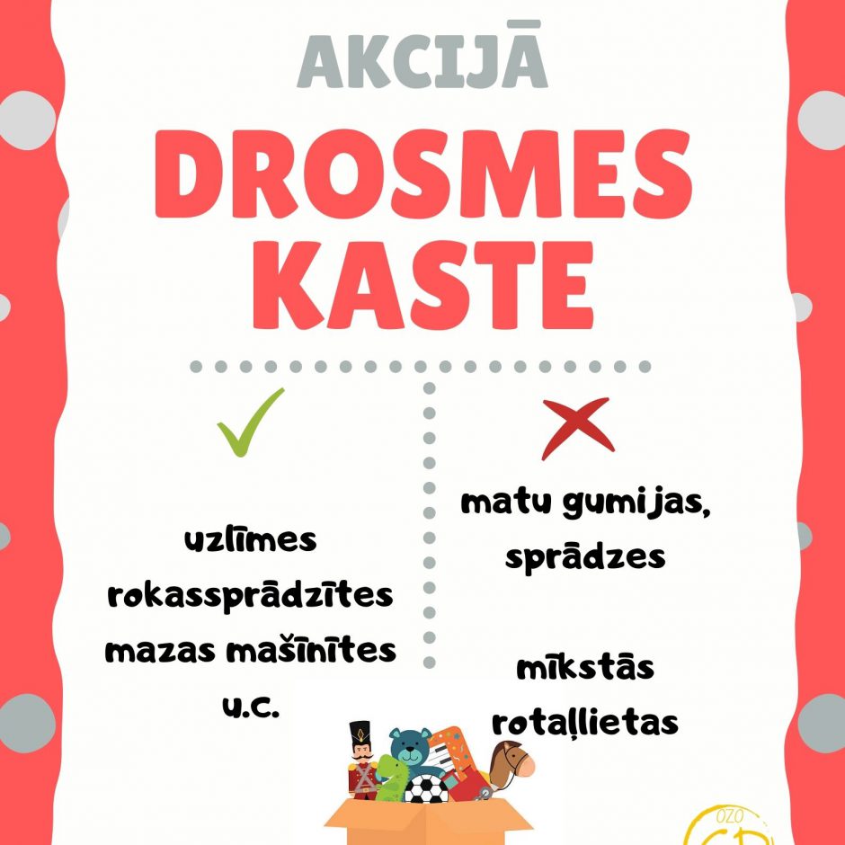 Lai iesaistītos akcijā – līdz 27.novembrim sarūpē mazu drosmes dāvaniņu, kādam no BKUS slimnīcas mazajiem pacientiem. Sarūpēto dāvaniņu nodod savai klases audzinātājai, kura to nodos tālāk skolēnu domes koordinatorei.