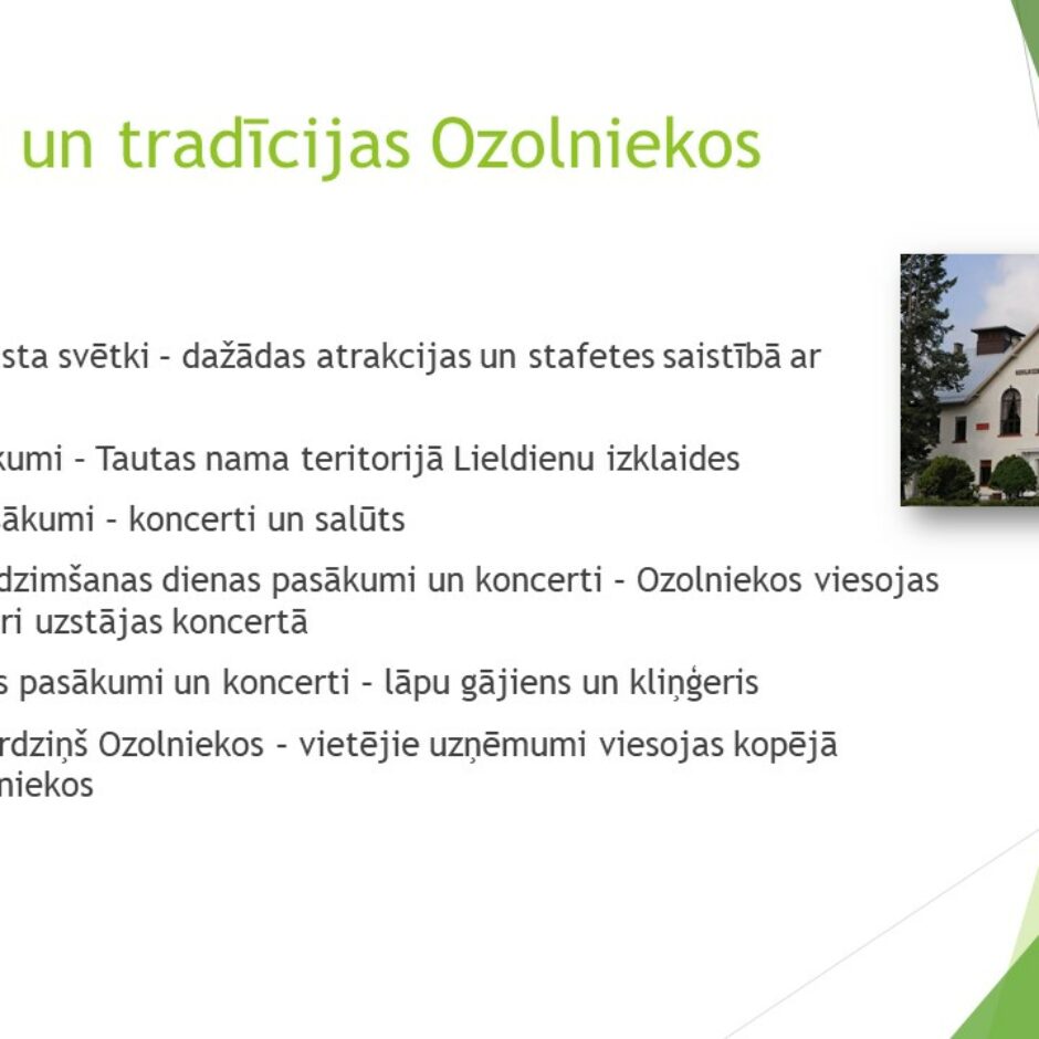 Konkursa dalībniekiem bija nepieciešams sagatavot arī mājas uzdevumu – stāstījumu vai prezentāciju par virsrakstu “Mēs lepojamies”. Skolnieces lepojās Ozolniekiem, minot pagasta nozīmīgākās vietas, populārākos cilvēkus, pasākumus un tradīcijas, par ko ieguva maksimālo punktu skaitu.