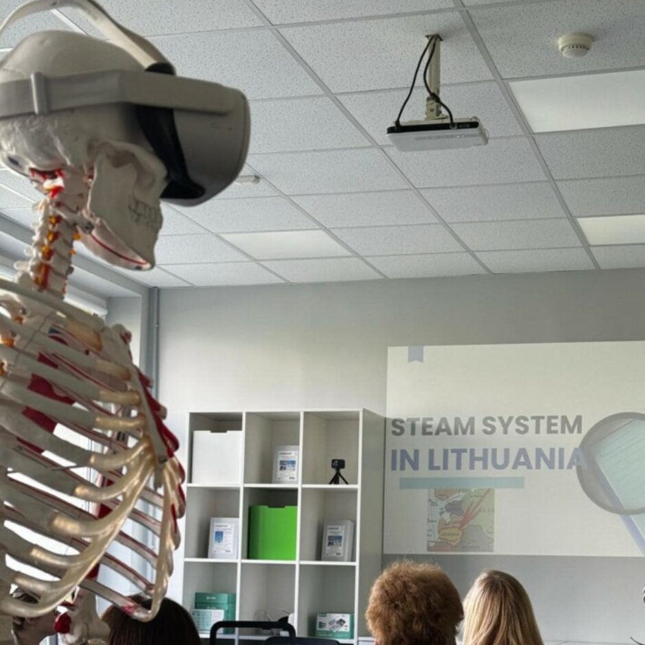 Skolotāji apmeklēja arī Kauņas Steponas Darinas un Stasys Girenas ģimnāziju, kurā skolas pārstāvji izstāstīja, kā viņi sadarbojas ar universitāti, lai īstenotu STEAM mācību procesā.