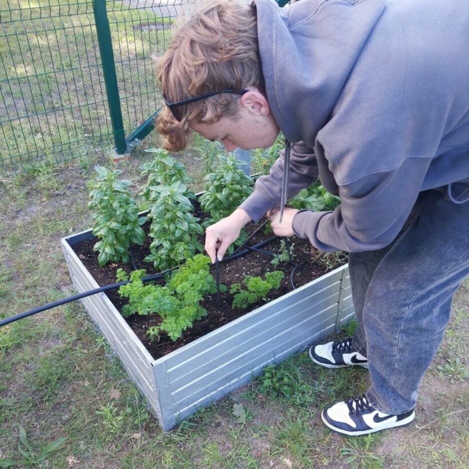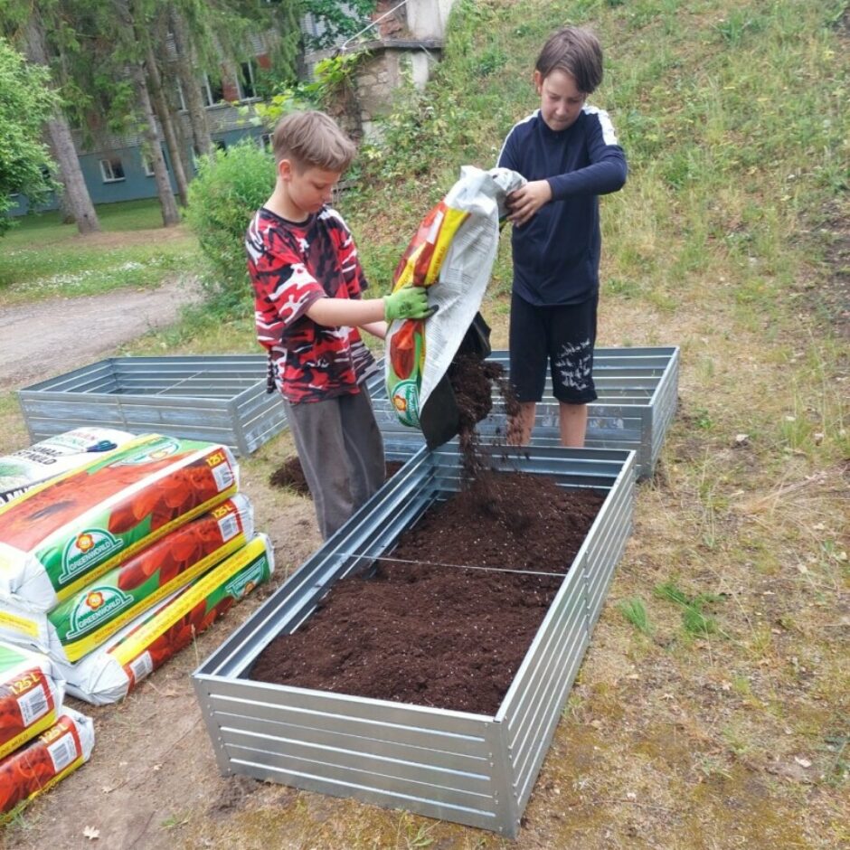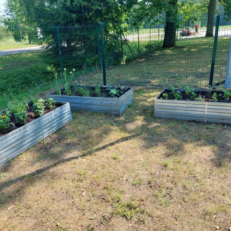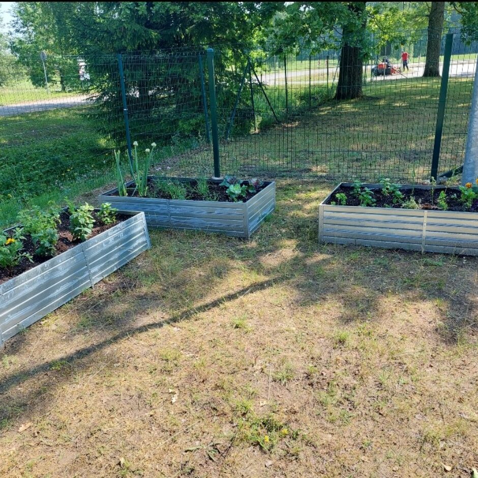 Skolas teritorijā, pie ēdnīcas, tika uzstādītas 6 augstās dobes, kurās tika iestādīti garšaugi-baziliki, ziemas sīpoli, pētersīļi, selerijas, timiāns, estragons, rozmarīns ,majorāns, lavanda  un citi garšaugi, kā arī ārstniecības augi, ko var izmantot tēju pagatavošanā. Visvairāk dobēs tika iestādītas dažādas piparmētras un mētras. Dobēs aug ābolu un citronu mētras, melisa, šokolādes, zemeņu  un greipfrūtu piparmētras un vēl citas smaržīgās mētras. Dobēs aug arī ārstniecības kumelītes, kliņģerītes, raspodiņi, samtenes un sarkanais āboliņš. Iepazīstoties ar augiem, kas aug dobēs, skolēni pilnveidos savas zināšanas par bioloģisko daudzveidību. Aicinājām arī vasaras nometņu dalībniekus apmeklēt mūsu dārziņu un izsmaržot dažādās piparmētras.