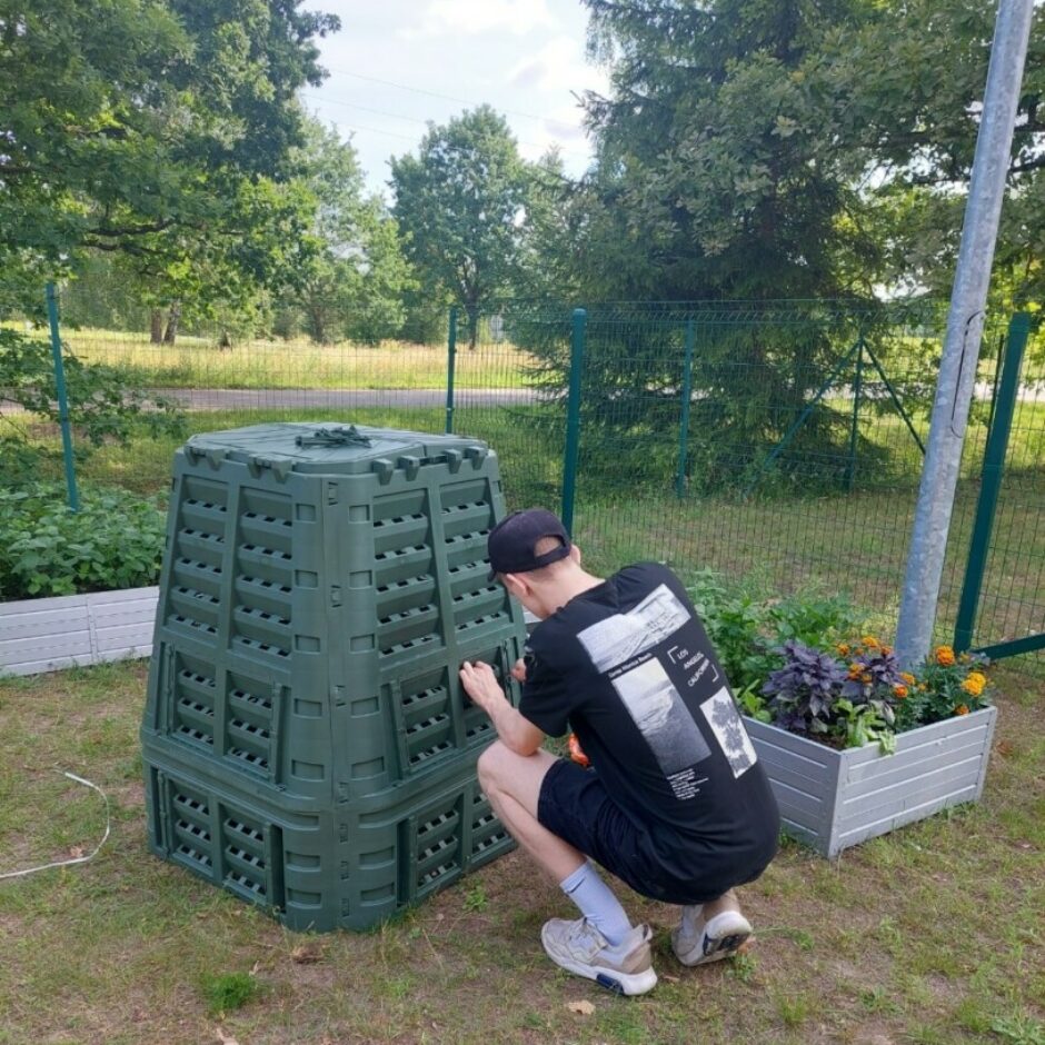 Projekta ietvaros dobēs tika ierīkota pilienlaistīšanas sistēma un  iekārtota komposta kaste.