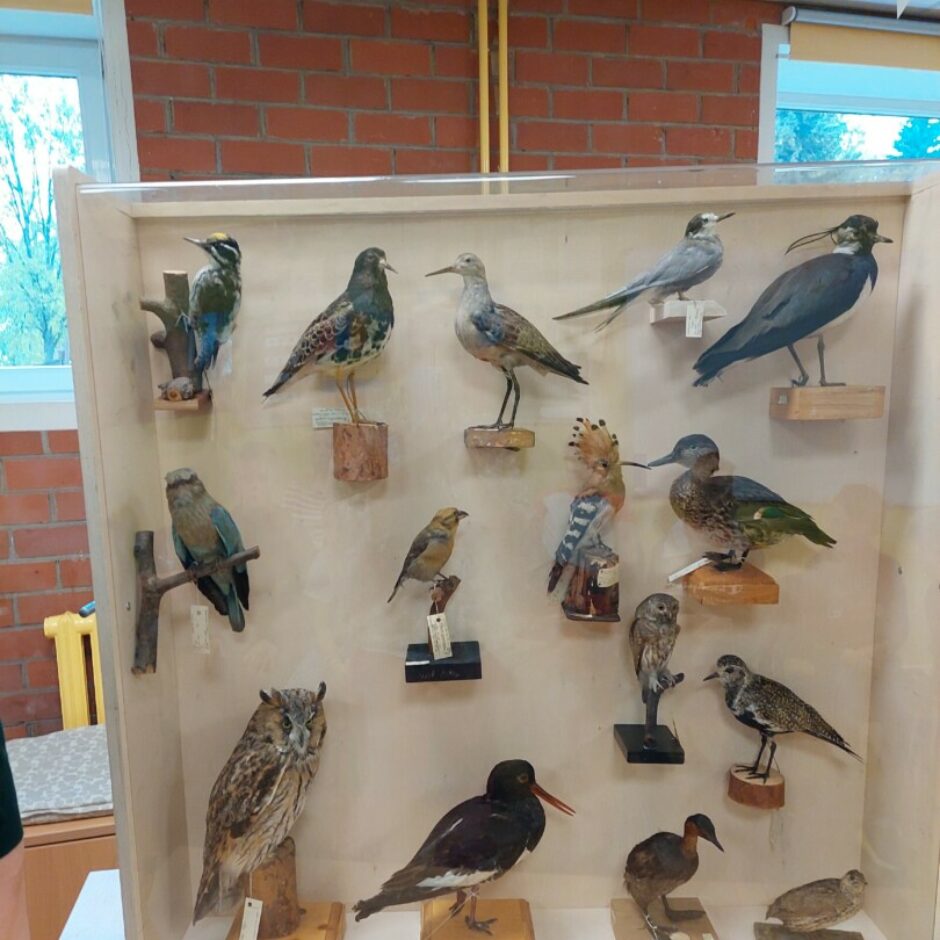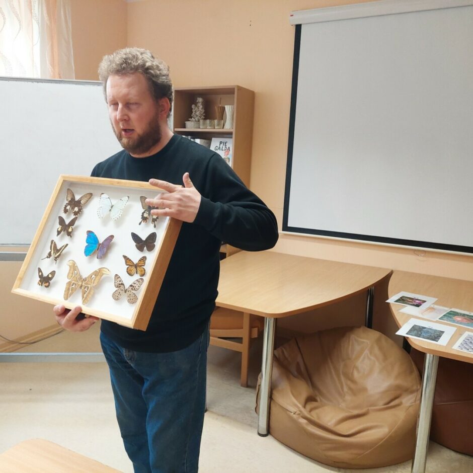 No muzeja pastāvīgās ekspozīcijas lektori bija atveduši līdzi uzskates materiālus – putnu un kukaiņu kolekcijas.