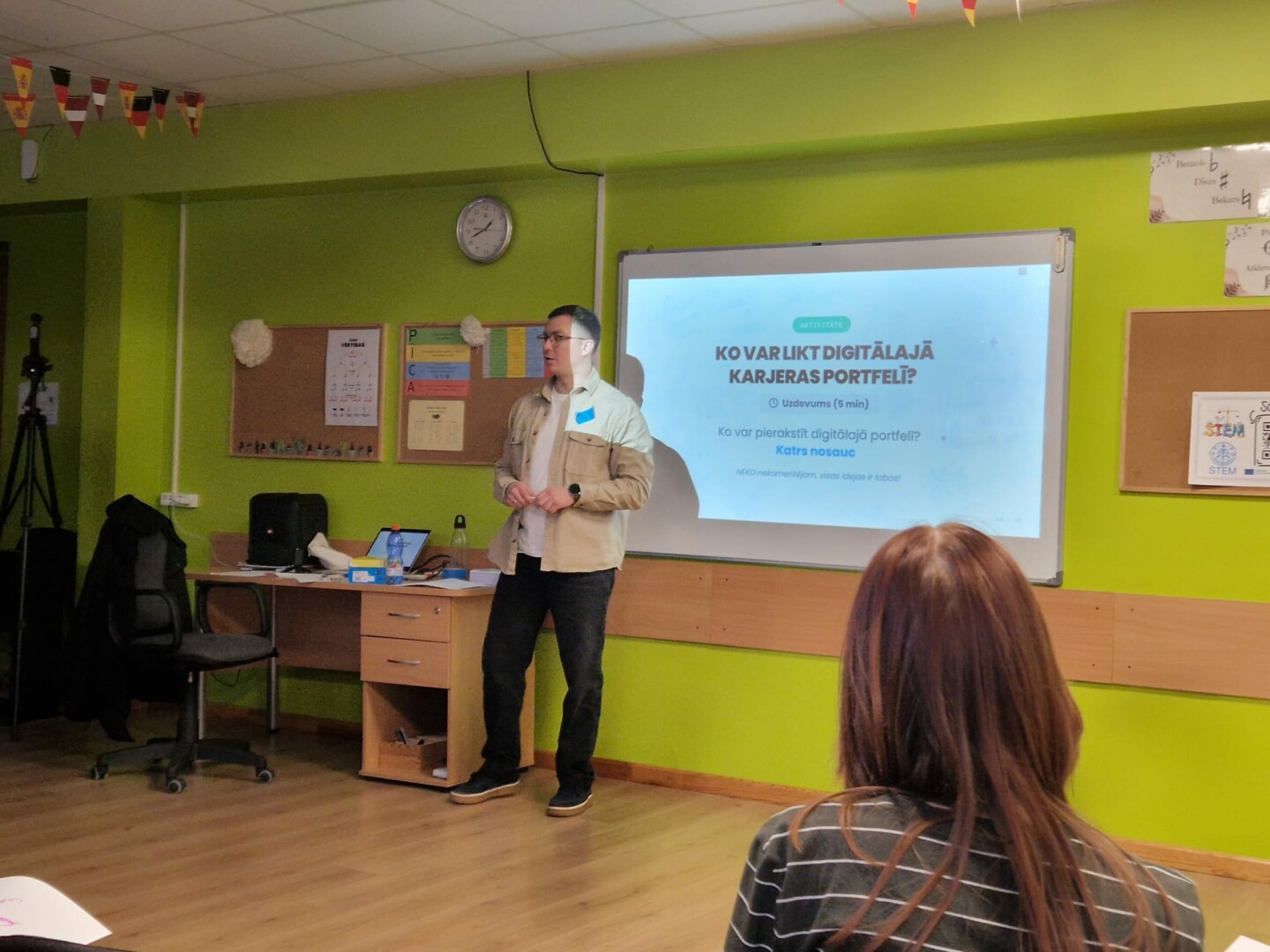 Nodarbībā skolēni iepazinās ar vienkāršu metodi digitālā pašportreta veidošanai, kurā iespējams apkopot intereses, prasmes un noteikt personīgās izaugsmes virzienus. Digitālais pašportrets tika aplūkots ne tikai IT profesiju kontekstā, bet arī kā praktisks rīks ikdienas lietošanai, izmantojot viedierīces vai mobilo tālruni.