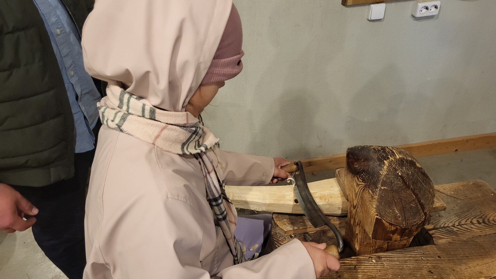 Tur bērni iepazina koka īpašības , uzzināja daudz interesanta par latviešu tautas folkloru, kur koki minēti gan ticējumos, gan mīklās. Katrs varēja pamēģināt senos kokapstrādes instrumentus – zāģi, slīmestu un divroku zāģi.