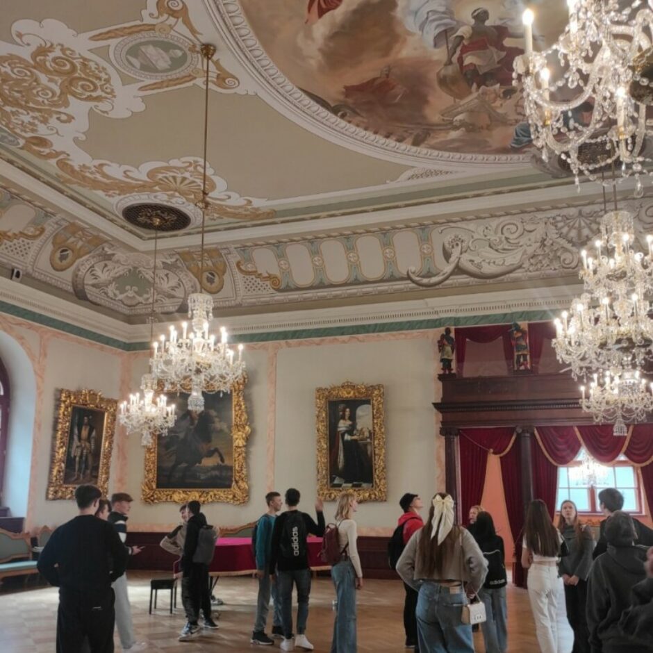 12.aprīlī 8. a klase devās mācību ekskursijā uz Rīgas pili un Melngalvju namu. Jaunieši gida pavadībā izzināja Rīgas pils vēsturi, aplūkoja prezidentu saņemto dāvanu kolekciju, izstaigāja pils zāles un noskaidroja, kādi pasākumi notiek šajās zālēs. Ekskursijas laikā tika nostiprinātas skolēnu zināšanas par viduslaikiem. Jaunieši apmeklēja arī Melngalvju namu, kur iepazinās ne tikai ar nama vēsturi, bet arī katrs izkala savu monētu.