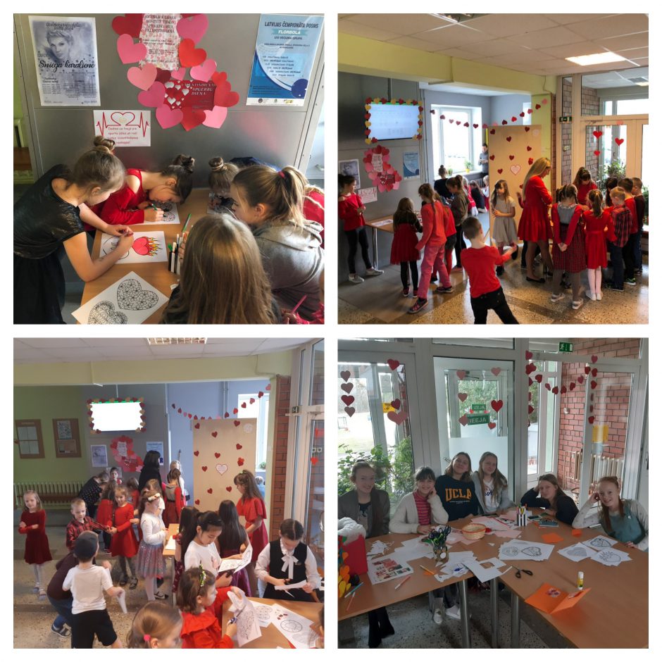 Jaunāko klašu skolēni visaktīvāk iesaistījās praktiskās radošajās darbnīcās – krāsoja siržu mandalas, veidoja apsveikumus un spēlēja tematiskās spēles – siržu desas (krustiņu un nullīšu spēle) un atmiņas spēli.
