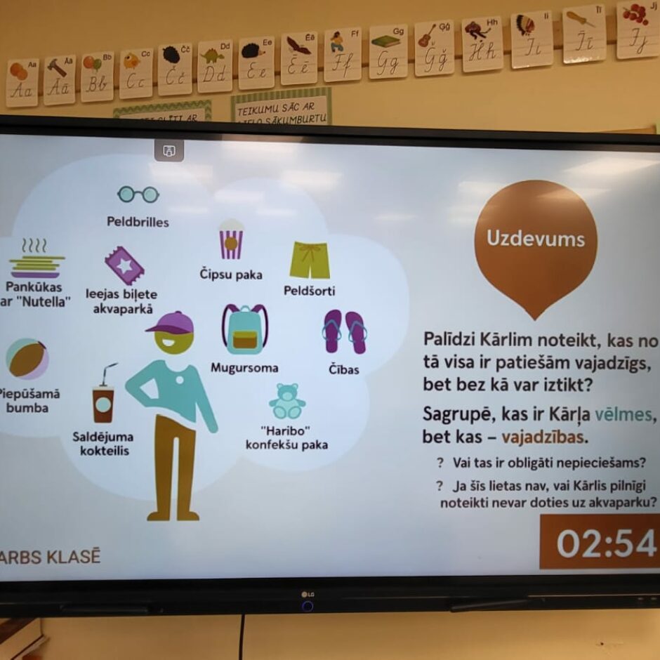 Skolēni mācījās atšķirt vēlmes no vajadzībām, diskutēja, kas ir nauda, kāpēc to vajag, kā var to nopenīt? Vēl uzzināja, ko nozīmē – tērēt gudri, kā arī dalījās pieredzē par naudas krāšanu. Nodarbību noslēgumā 1. un 2. klašu skolēniem bija jāuzzīmē sava nākotnes nauda, bet 3. klašu skolēniem jāuzfilmē video par naudas krāšanu.