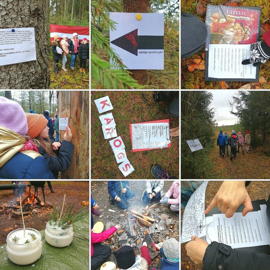 14.novembrī 3.e klase devās orientēšanās piedzīvojumā “Latvijai pa pēdām” mežā, iepazīstot faktus par mūsu valsts tapšanu un simboliem, reizē izzinot mežu un mācoties saudzēt dabu. Orientējāmies pēc kartes, meklējām norādes pamežģījām prātus atjautības uzdevumos un pildījām saliedējošus uzdevumus. Radoši darbojāmies mežā – lējām sojas vaska sveces un dekorējām tās, izmantojot meža veltes. Sildījāmies, dzerot uz ugunskura gatavotu kakao ar mini zefīriņiem.