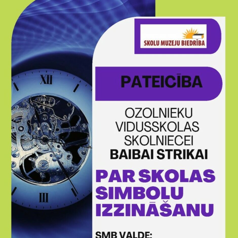 12.aprīlī ar prezentācijām ZOOM platformā noslēdzās Skolu muzeju biedrības organizētā skate “Skolas simboli” – izglītības iestāžu labā prakse skolas vēstures izzināšanā un popularizēšanā. Arī mēs bijām 20 uzaicināto skolu skaitā, kurām bija jāprezentē savs veikums, un to lieliski izdarīja skolas muzeja gide 10.b klases skolniece Baiba Strika.