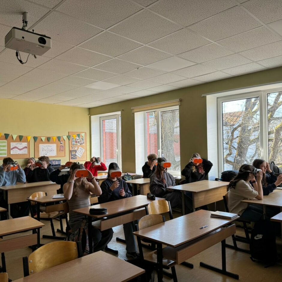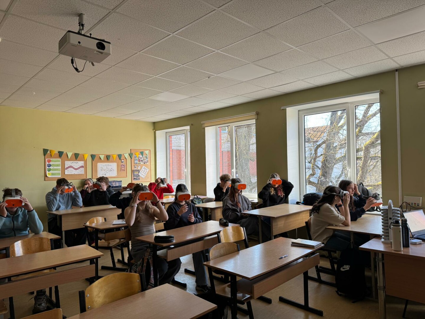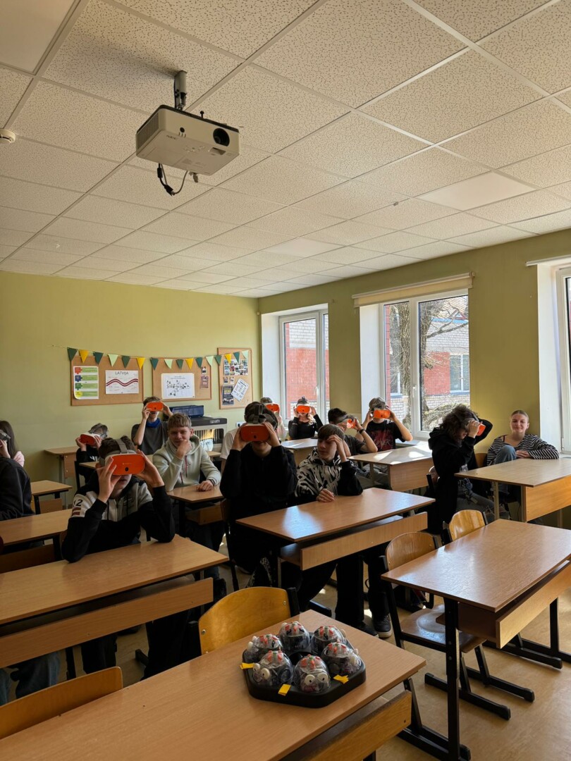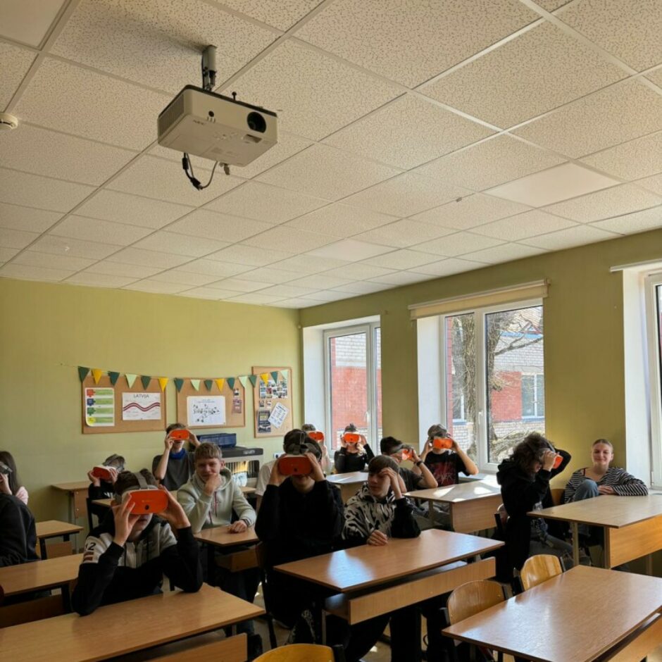 Izmantojot ClassVR virtuālās realitātes brilles, skolēniem bija iespēja vērot Pitagora teorēmas vizuālos pierādījumus, kas palīdzēja labāk saprast tās matemātisko būtību un nozīmi. Strādājot grupās, skolēni programmēja modulāros robotus, lai tie uzzīmētu taisnleņķa trijstūri, balstoties uz Pitagora teorēmu. Šis uzdevums ļāva vienlaikus attīstīt gan matemātiskās, gan programmēšanas prasmes. Nodarbības noslēgumā skolēni piedalījās interaktīvā testā, kas palīdzēja pārliecināties par tēmas izpratni.