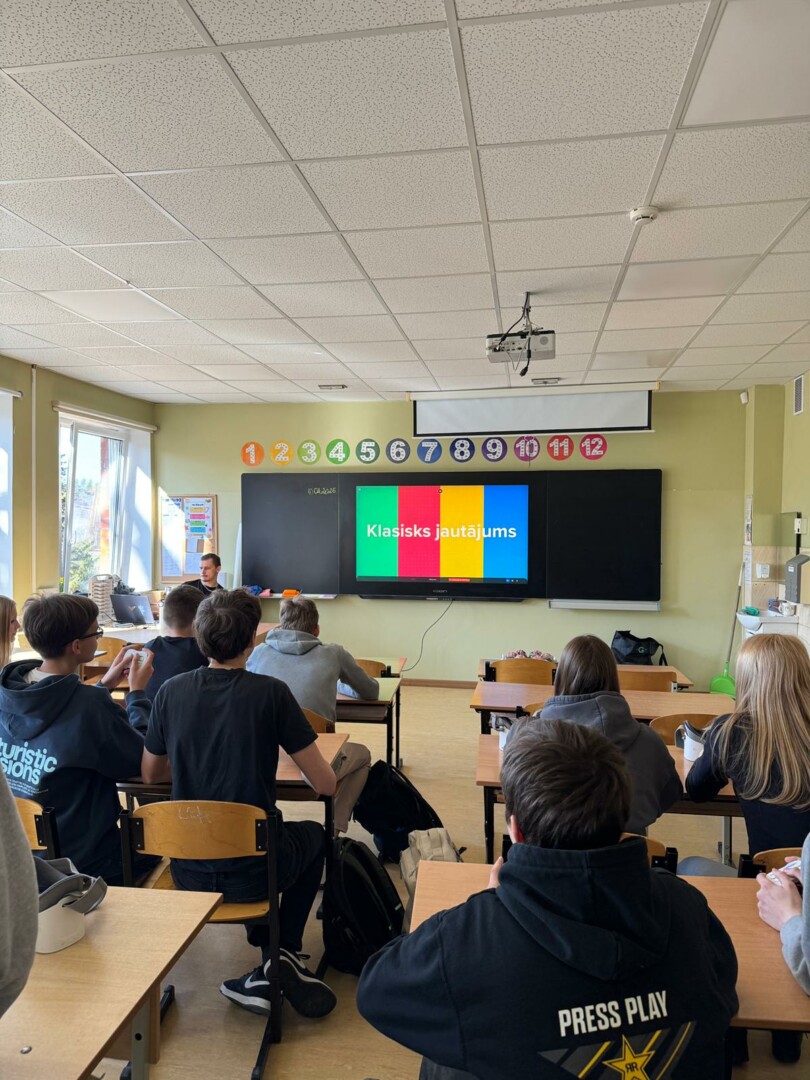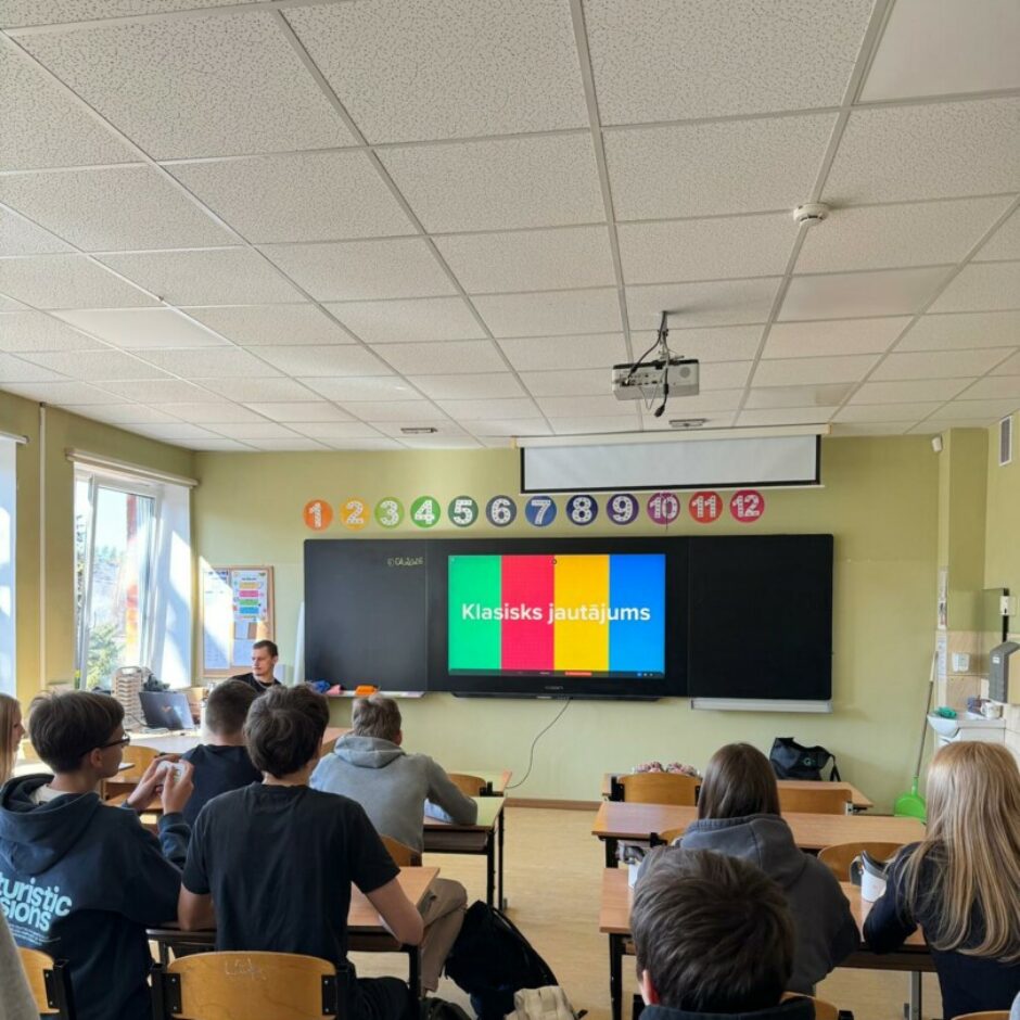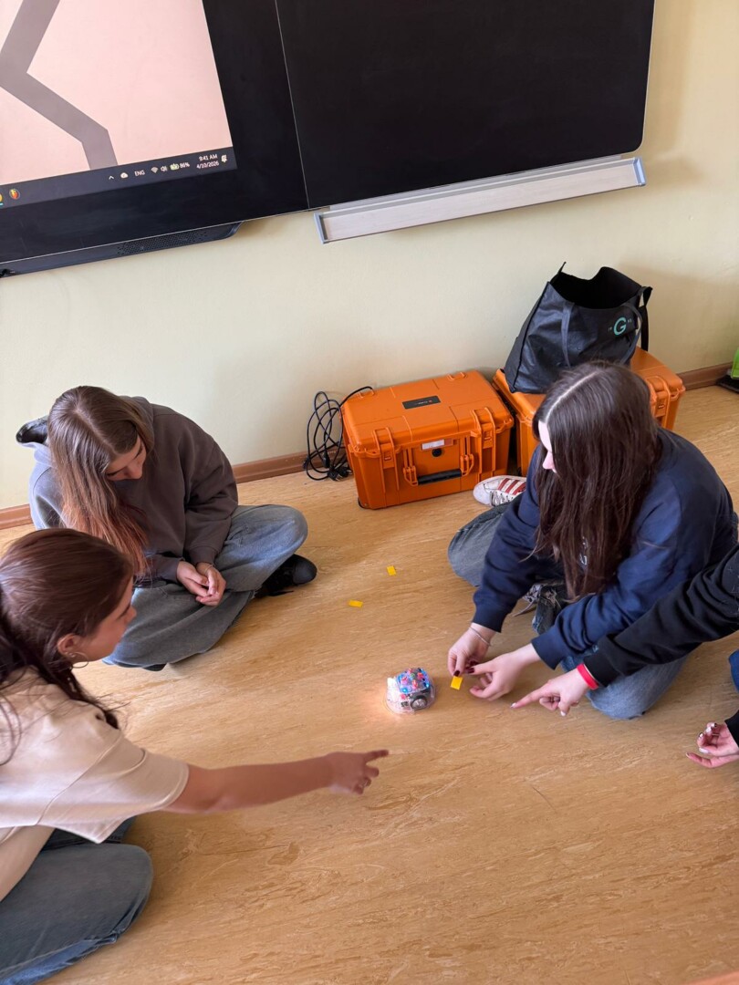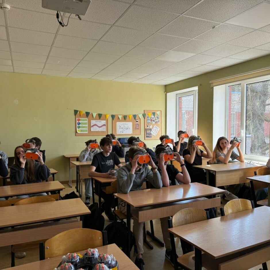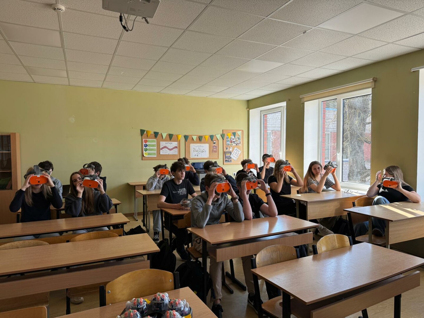 Izmantojot ClassVR virtuālās realitātes brilles, skolēniem bija iespēja vērot Pitagora teorēmas vizuālos pierādījumus, kas palīdzēja labāk saprast tās matemātisko būtību un nozīmi. Strādājot grupās, skolēni programmēja modulāros robotus, lai tie uzzīmētu taisnleņķa trijstūri, balstoties uz Pitagora teorēmu. Šis uzdevums ļāva vienlaikus attīstīt gan matemātiskās, gan programmēšanas prasmes. Nodarbības noslēgumā skolēni piedalījās interaktīvā testā, kas palīdzēja pārliecināties par tēmas izpratni.