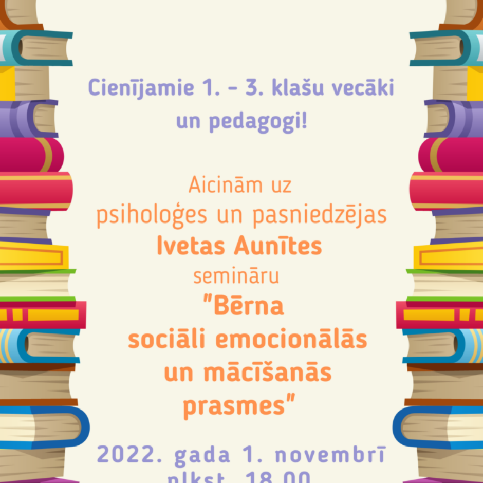 Aicinām uz psiholoģes un pasniedzējas Ivetas Aunītes semināru “Bērna sociāli emocionālās un mācīšanās prasmes”