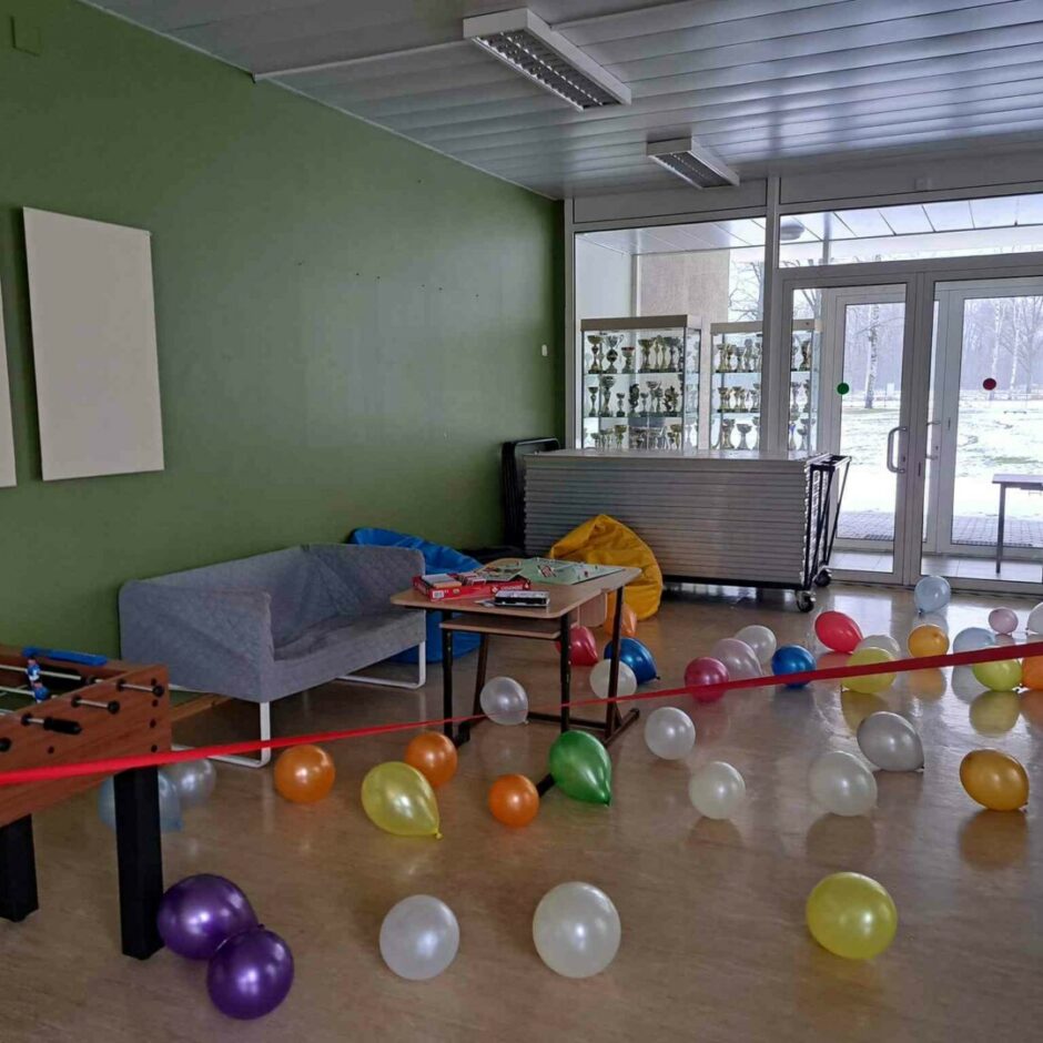 Atpūtas stūrītī pieejami pieci sēžammaisi, galda futbols un dažādas galda spēles.