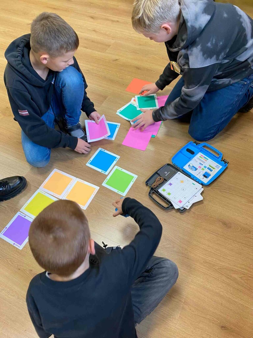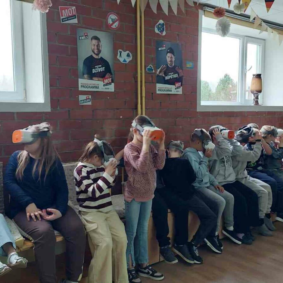 Ceļojuma laikā ar ClassVR virtuālās realitātes brillēm apskatījām Saules sistēmu – apskatījām visas planētas, to secību virzienā no Saules, Zemes -Saules -Mēness novietojumu un kustību. Bijām ļoti tuvu Melnajam caurumam. Par gravitāciju mēs jau zinājām (tieši šo tēmu šobrīd apgūstam dabaszinībās)! Tādēļ varējām diskutēt ar nodarbības vadītājiem par tēmu – kā būtu, ja būtu..! Nodarbības noslēgumā izmēģinājām savus spēkus tuvākiem un tālākiem ceļojumiem. Ceļojām ar robotiem, kuriem ir krāsu sensori. Tās tikai bija sacensības! Vistālāk tika 2 klašu komandas, kuru ceļš Kosmosā sastāvēja no 15 dažādu krāsu laukumiem.