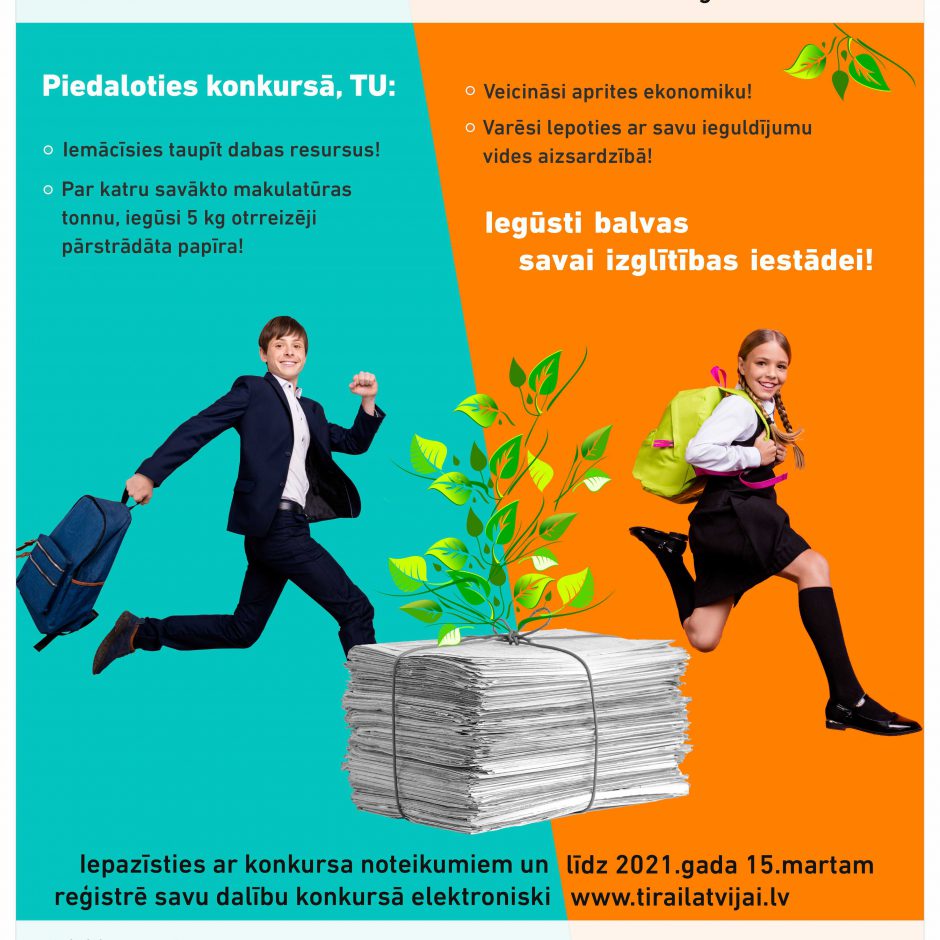 Klase, kura būs nodevusi visvairāk makulatūras, saņems balvu no skolas: apmaksātu transportu pavasara ekskursijai 300 eur apmērā.
