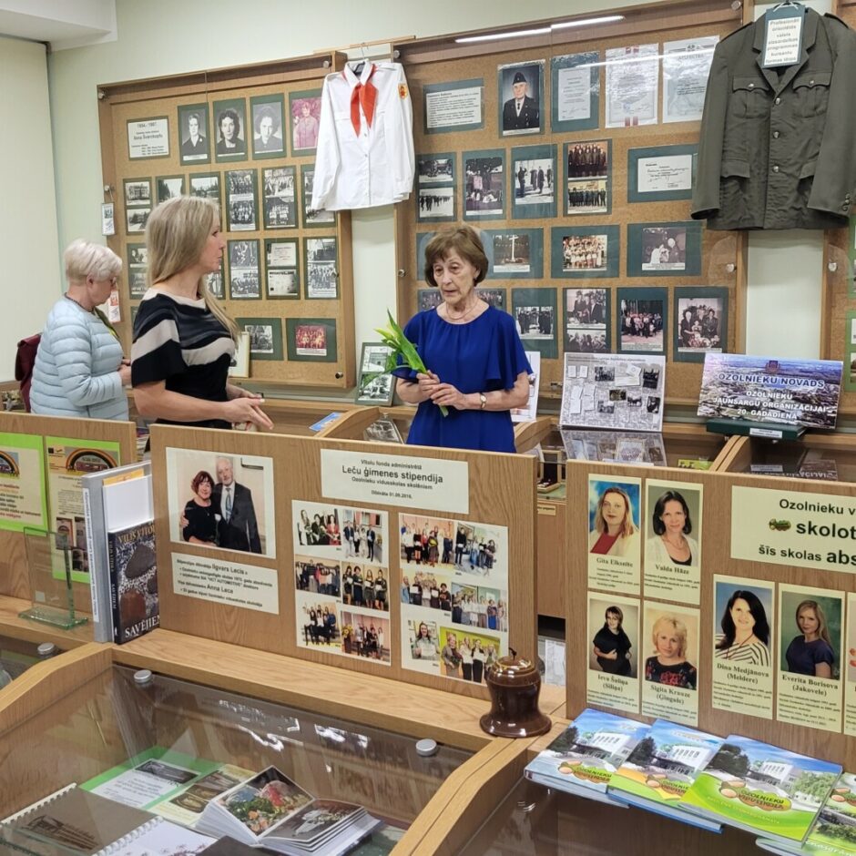Pa ceļam uz Jelgavu Rīgas kolēģi kuplā skaitā viesojās Ozolnieku vidusskolā un apmeklēja mūsu skolas vēstures muzeju. Ciemiņus sagaidīja un laipni uzņēma skolas direktore Everita Borisova un muzeja pedagoģe Maija Kārkliņa. Viesu pulkā bija Rīgas Skolu muzeja vadītājs Jāzeps Imants Vikšers, Rīgas skolu muzeju pedagogu metodiskās apvienības vadītājs, izglītības metodiķis Uģis Vārslavāns, Latvijas Skolu muzeju biedrības valdes priekšsēdētāja Vēsma Sūna. Rīgas skolu muzeju pedagogi, zinoši un ieinteresēti, iepazinās ar mūsu muzeju – skatījās, pētīja, jautāja, fotografēja. Esam gandarīti, ka varējām dalīties pieredzē un tikām atzinīgi novērtēti. Daži fragmenti no ierakstiem muzeja viesu grāmatā – “saistoša un interesanta ekspozīcija”, “bagātīgs muzeja krājums”, “gaumīgi iekārtots muzejs”, “lielisks darbs”, “no Jums var daudz mācīties”.